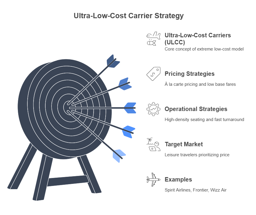 | ULCC | Price-Sensitive Travelers | Point-to-Point | Unbundled Fees | Lowest Base Fare |