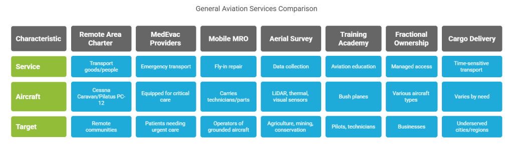 5. GA Pilot and Technician Training Academy: Establish programs focused on bush flying, remote field repair, and regulatory navigation.